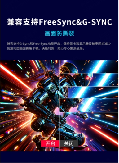显示器还兼容FreeSync与G-SYNC防撕裂技术,可根据显卡输出动态调整刷新率,消除画面撕裂与卡顿现象,确保游戏过程流畅稳定。