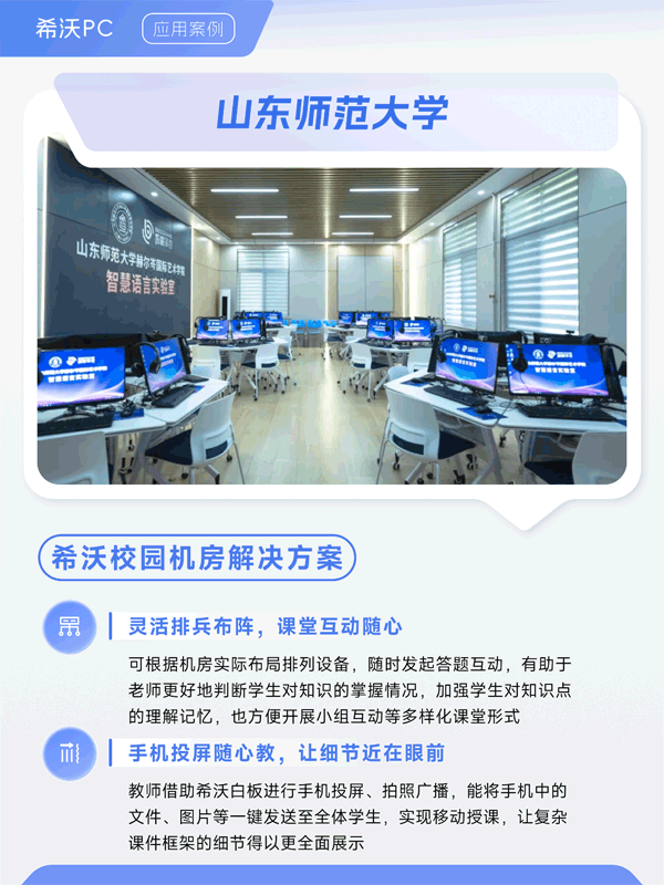 【数字视听网讯】从广东校园的标准化机房建设,到江西校园的教学模式革新,再到山东高校的专业实训升级,希沃计算机的身影遍布全国多所学校,在日常教学、技能实训、考试保障等多样场景中绽放光彩!