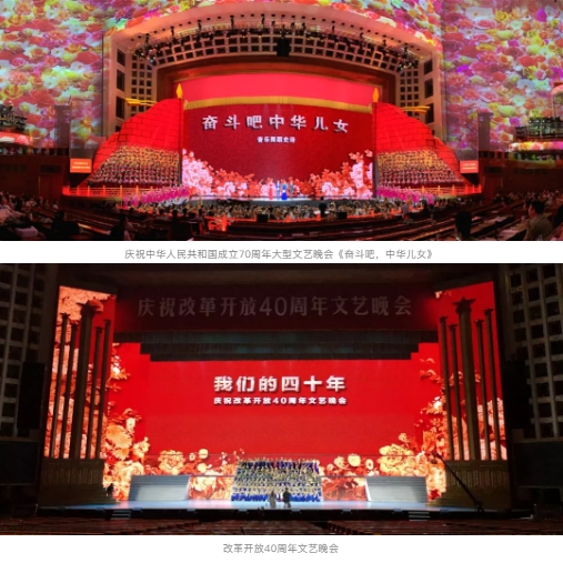 利亚德为本次晚会舞台定制了近1500平方米LED屏幕以及提供了近40台高流明投影设备,生动再现了那段波澜壮阔的抗战历史。此外,利亚德还为接待晚宴提供近300平方米LED屏幕,为宴会营造了庄重而热烈的氛围。